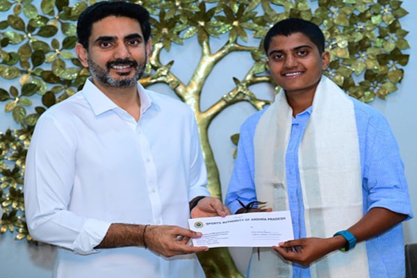 బుధవారం ఉండవల్లిలోని తన నివాసంలో ఐటీ, విద్యాశాఖ మంత్రి నారా లోకేశ్ స్వయంగా శ్రీ చరణికి చెక్కును అందజేశారు. ఈ సందర్భంగా ఆమె కృషిని ప్రశంసిస్తూ, రాష్ట్రానికి గర్వకారణంగా నిలిచారని అన్నారు.