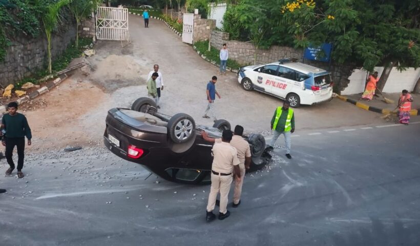 హైదరాబాద్ నగరం నడిబొడ్డున శనివారం మధ్యాహ్నం ఓ కారు అదుపుతప్పి పల్టీలు కొట్టింది.