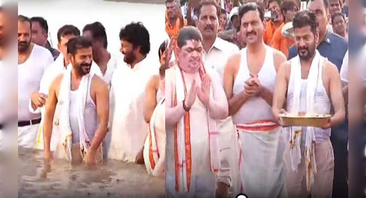 Cm revanth: కాళేశ్వరంలో సరస్వతీ పుష్కరస్నానమాచరించిన సీఎం రేవంత్ రెడ్డి
