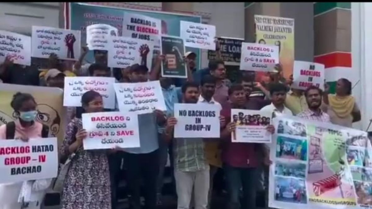 Telangana:టీజీపీఎస్సీ గ్రూప్ 4 తుది ఫలితాలను వెంటనే విడుదల చేయాలని డిమాండ్ చేస్తూ హైదరాబాద్లోని కాంగ్రెస్ ప్రధాన కార్యాలయమైన గాంధీభవన్లో అభ్యర్థులు నిరసన తెలిపారు. కార్యాలయ మెట్లపై నిల్చొని, ప్లకార్డులు ప్రదర్శిస్తూ, పెద్ద ఎత్తున నినాదాలు చేస్తూ ఆందోళన నిర్వహించారు. తుది ఫలితాల విడుదలలో ప్రభుత్వ నిర్లక్ష్యంపై తీవ్రస్థాయిలో మండిపడ్డారు. సర్టిఫికెట్ల వెరిఫికేషన్ను మూడు నెలలపాటు సుధీర్ఘంగా నిర్వహించారని, అది పూర్తయి రెండు నెలలు దాటినా ఎందుకు ఫలితాలను విడుదల చేయడం లేదని నినదించారు.